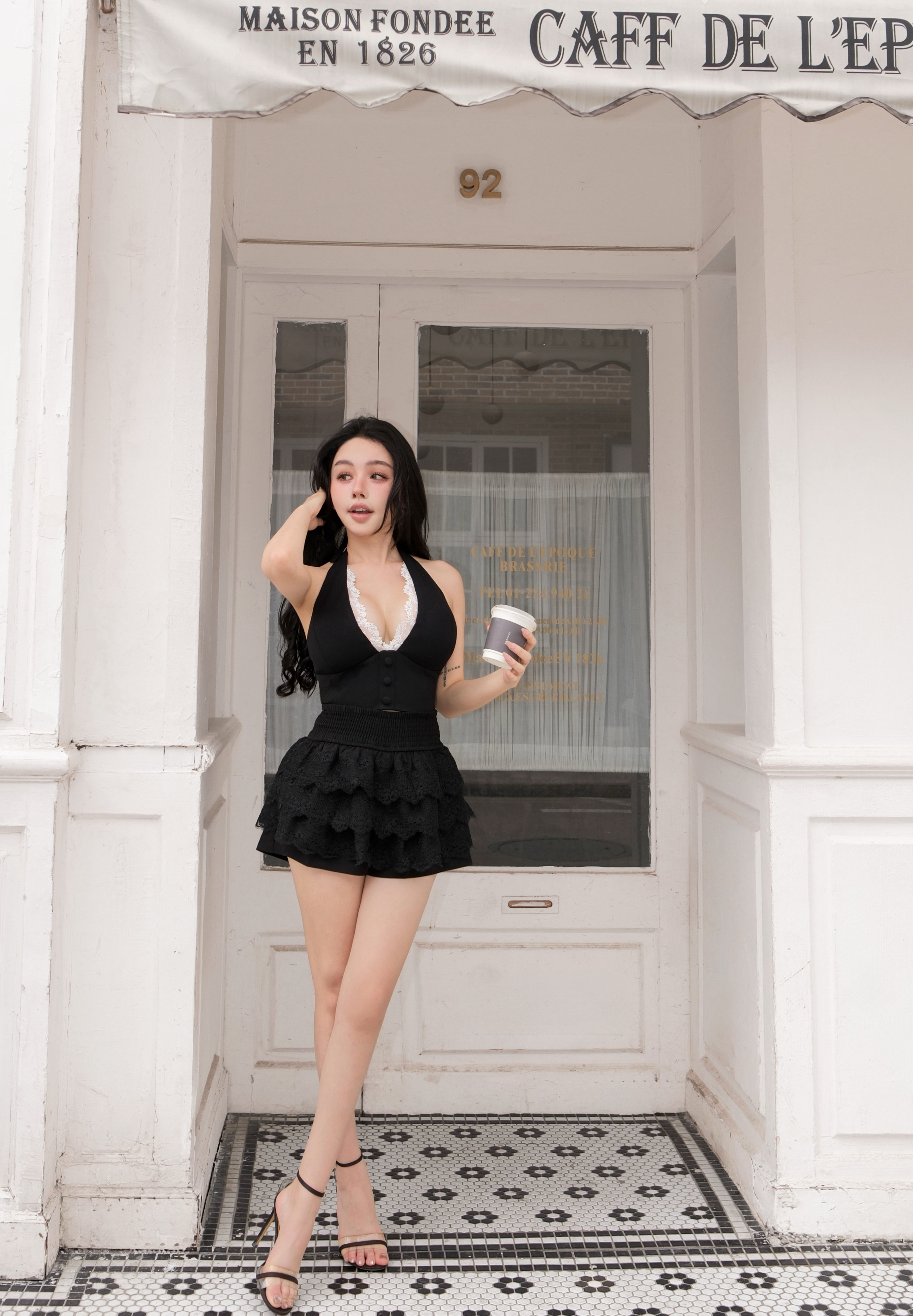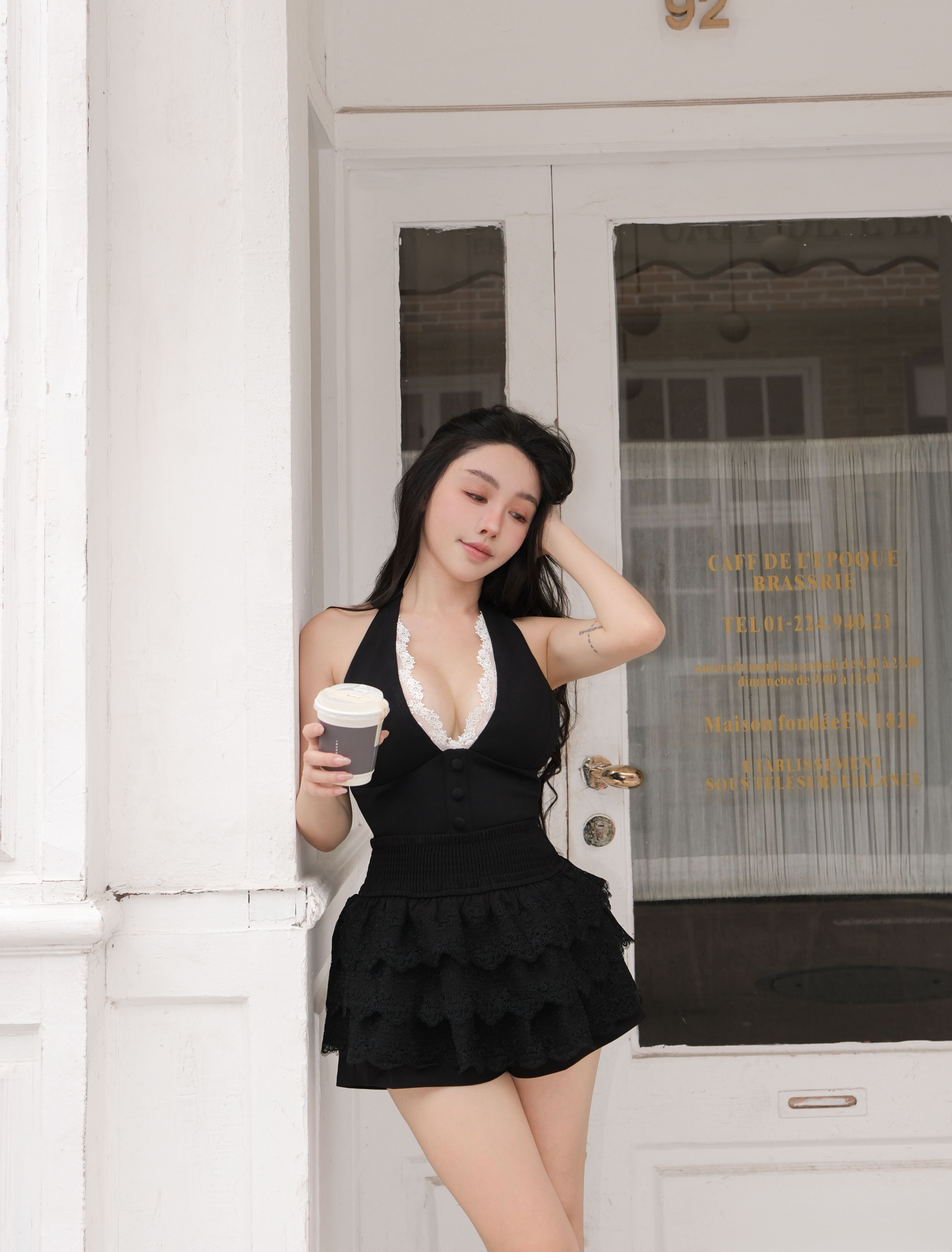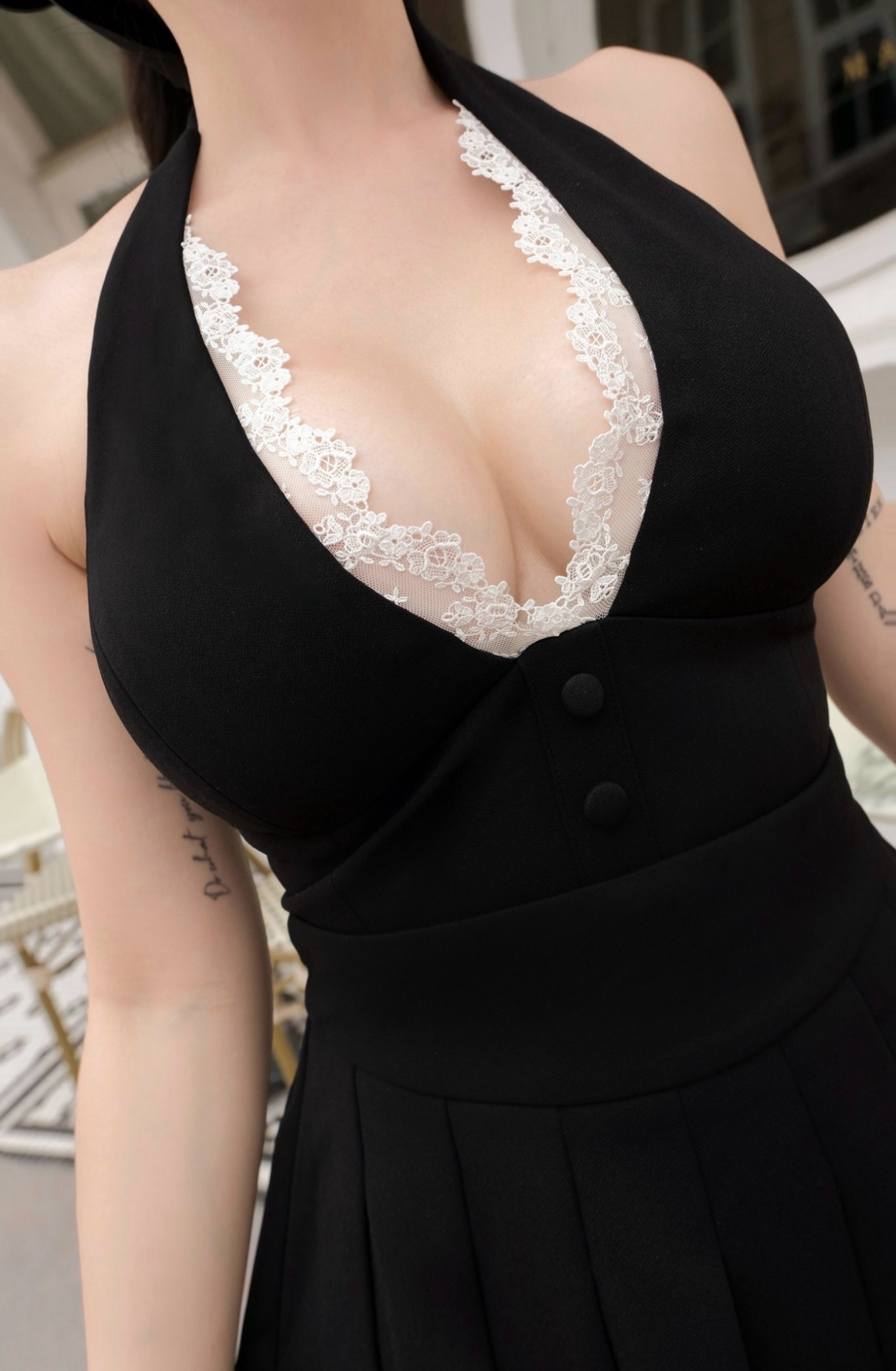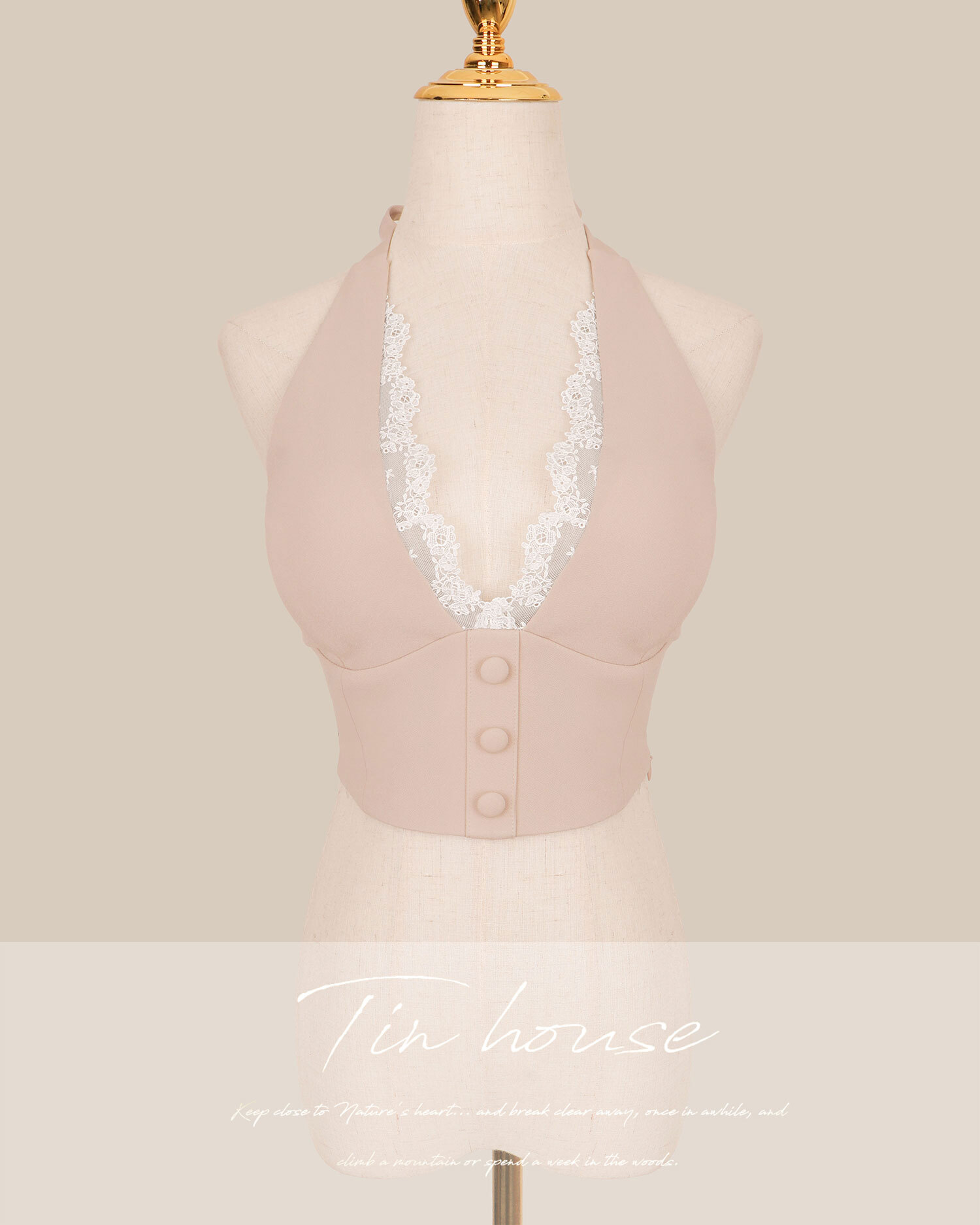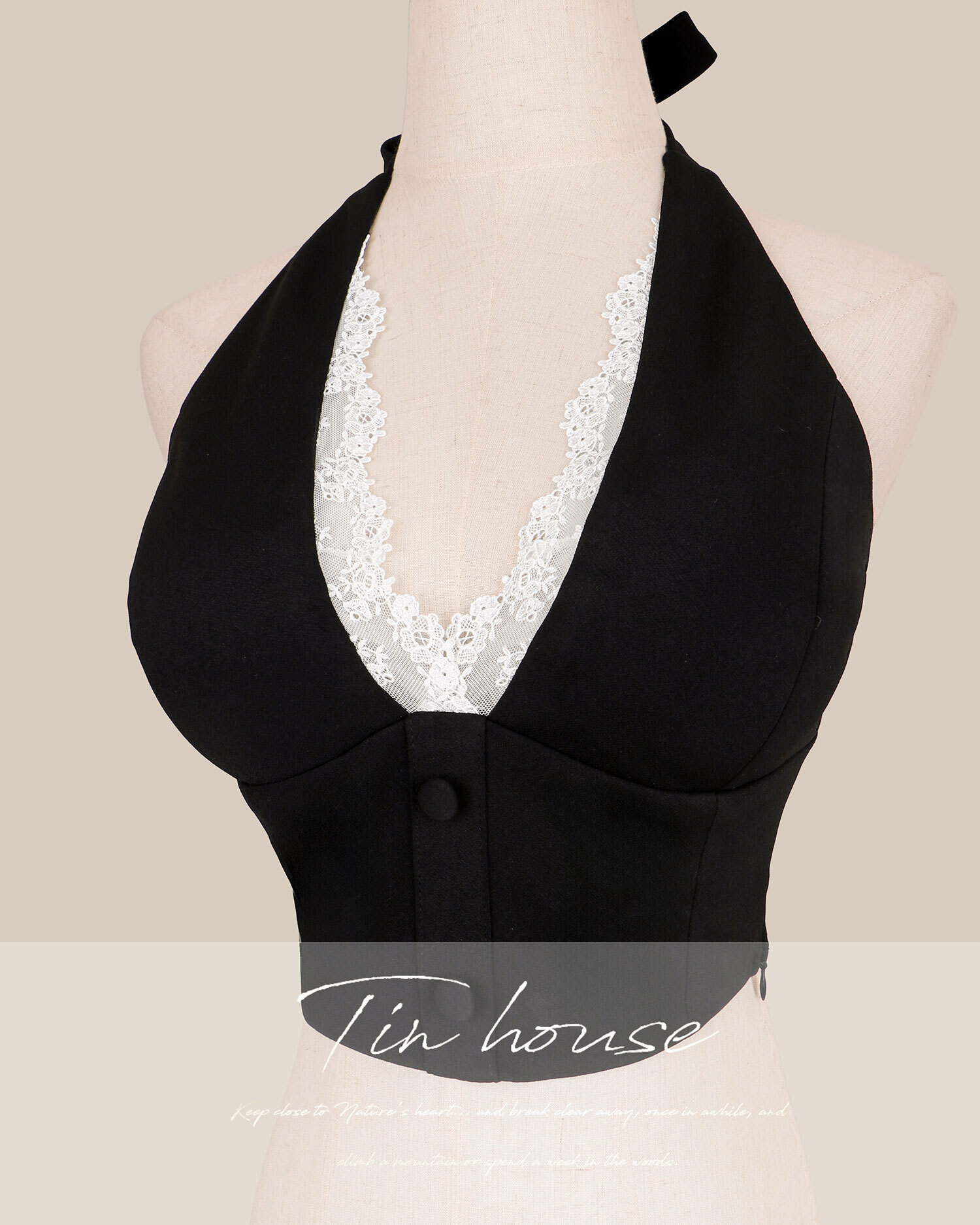 訂製-浪漫掛脖蕾絲短上衣