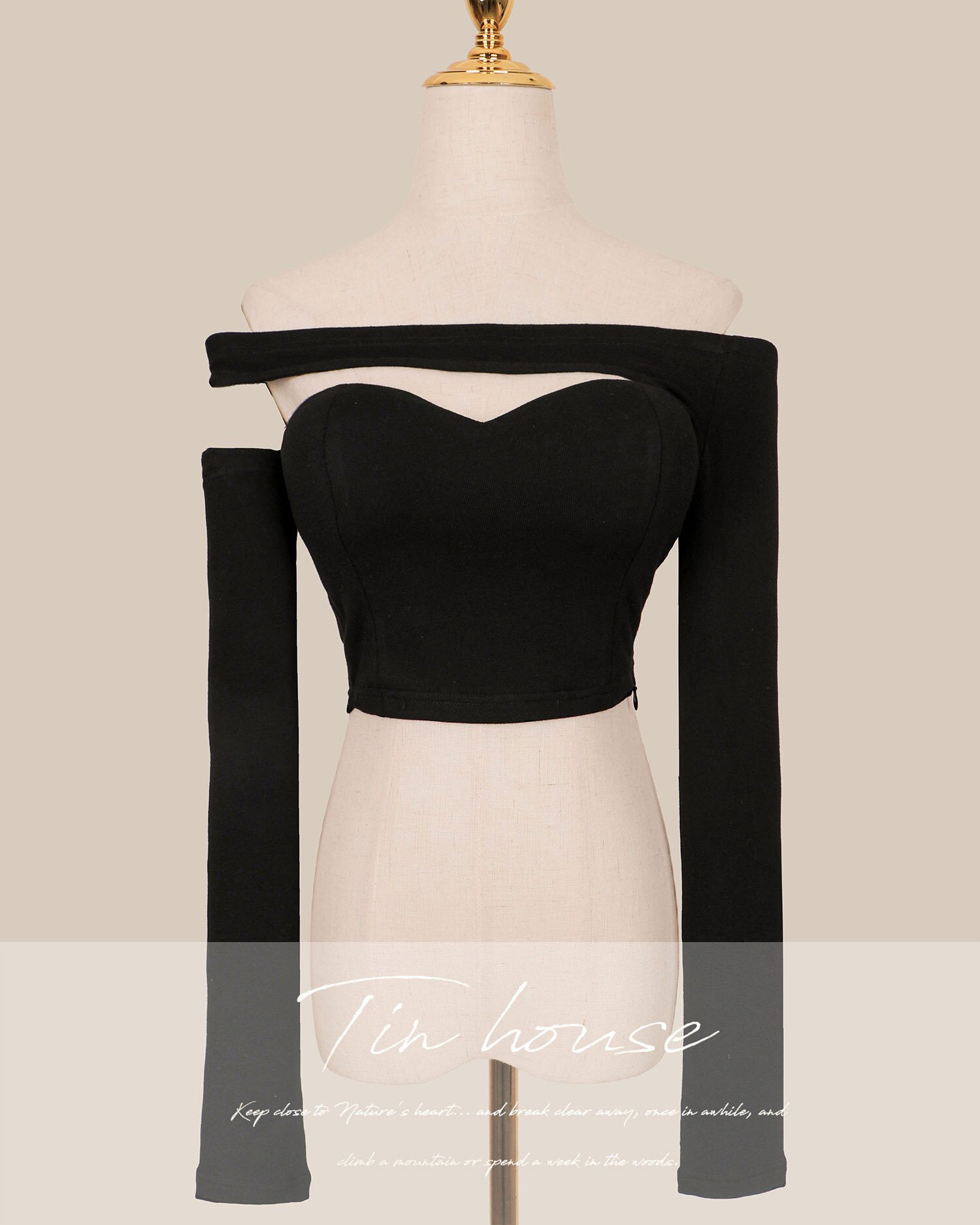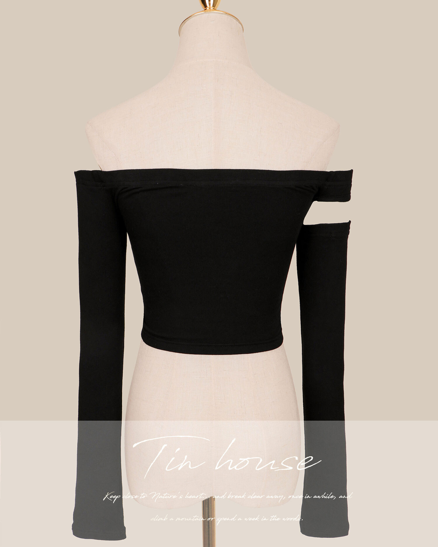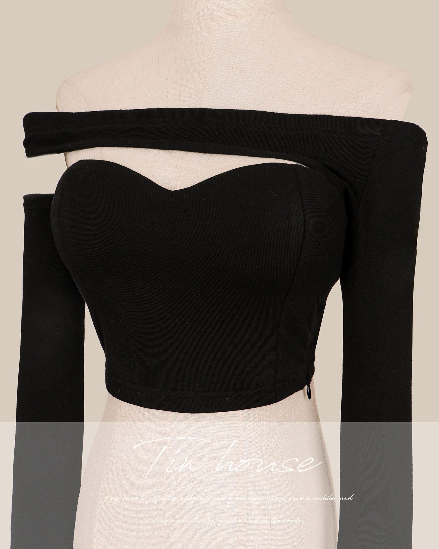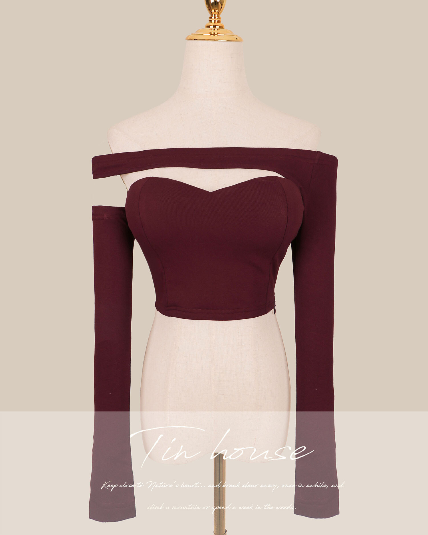 訂製-不對稱一字領桃心長袖上衣