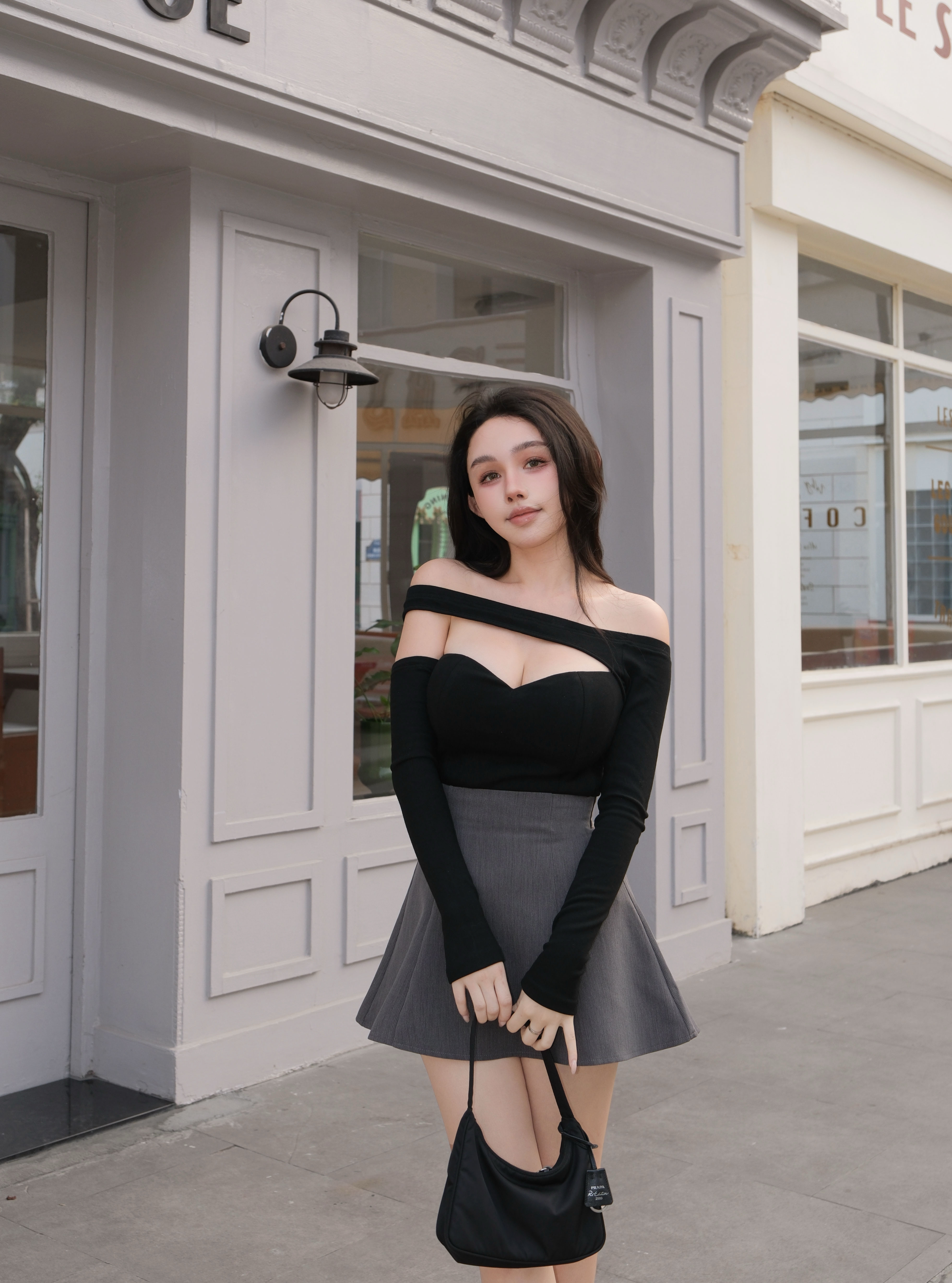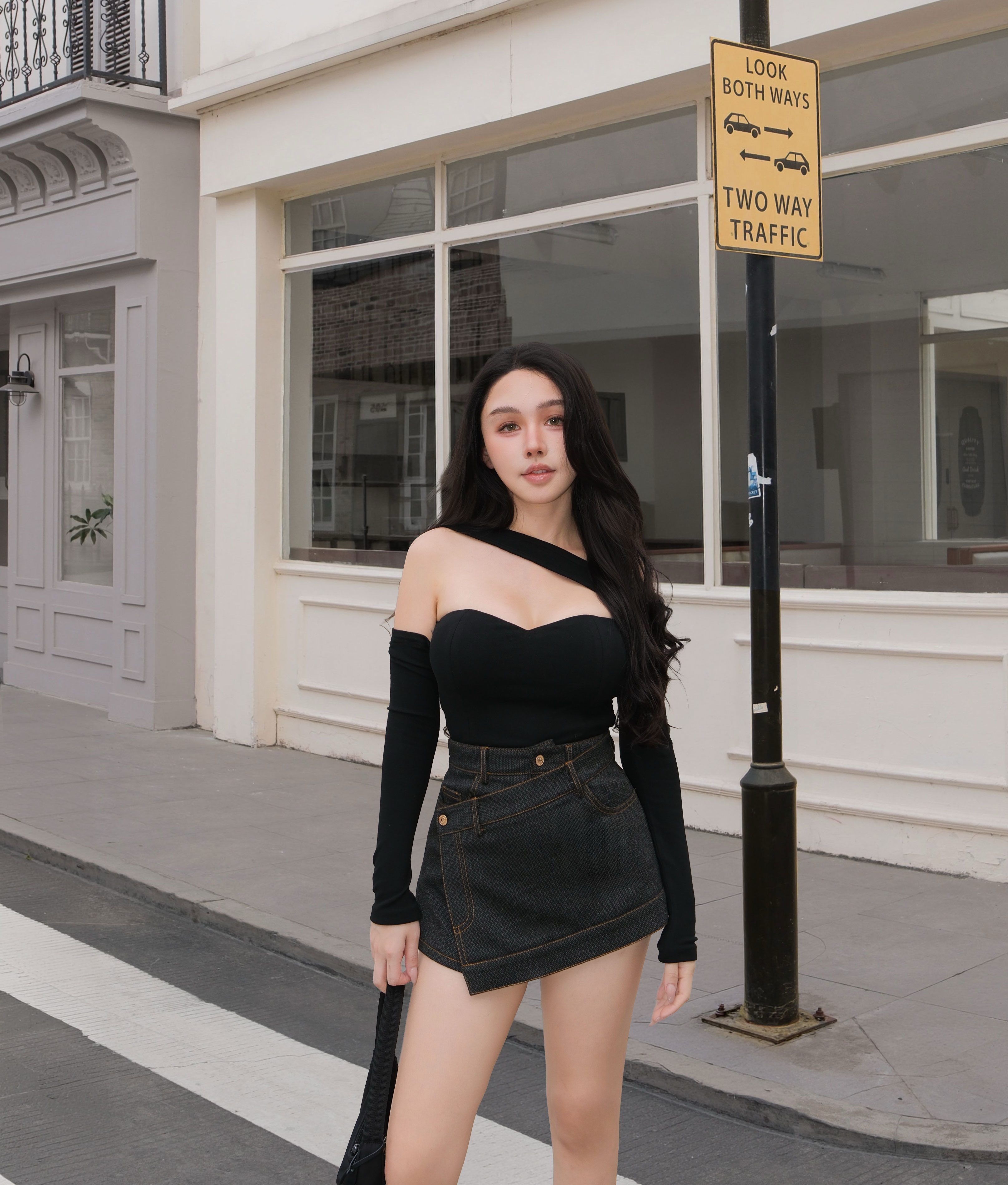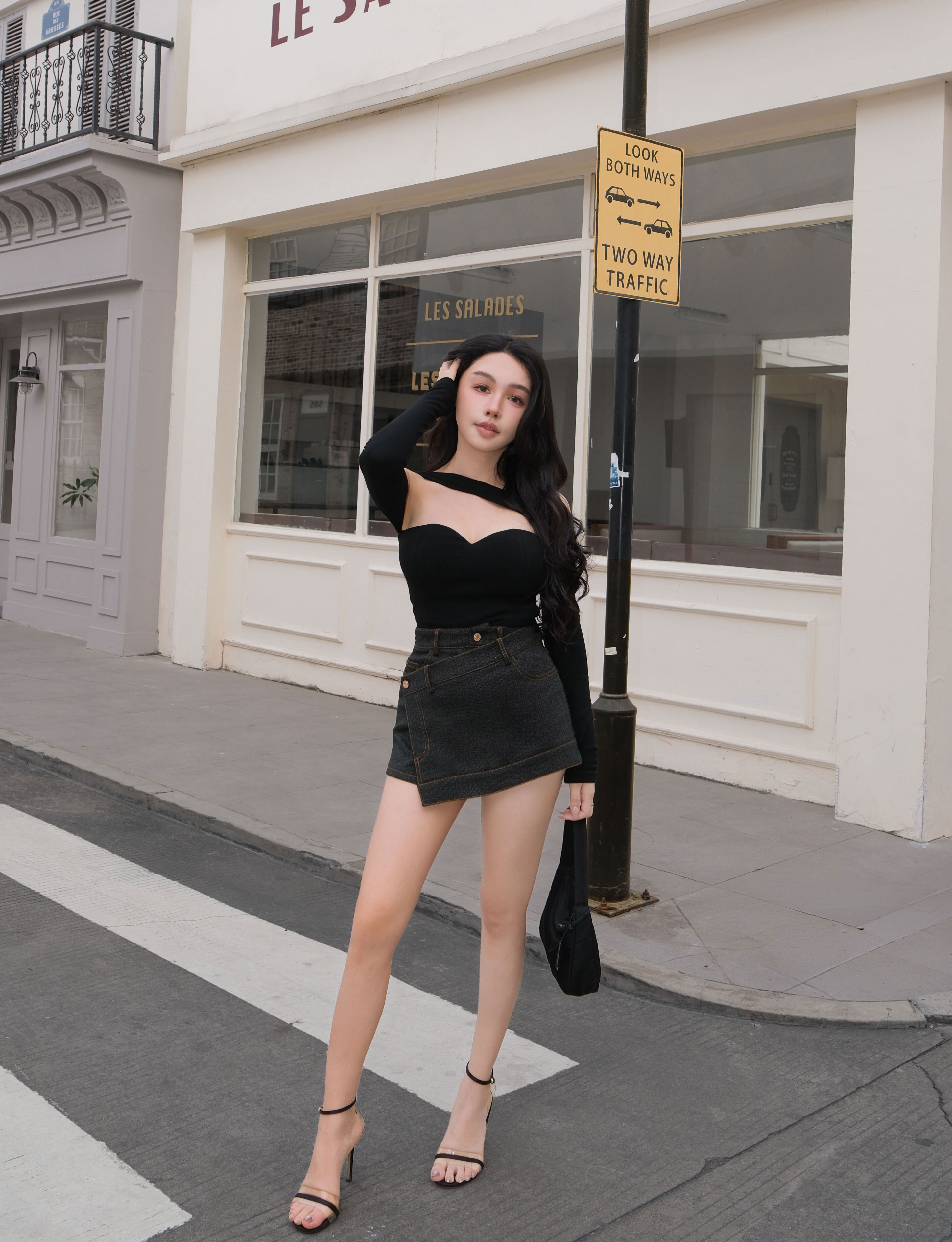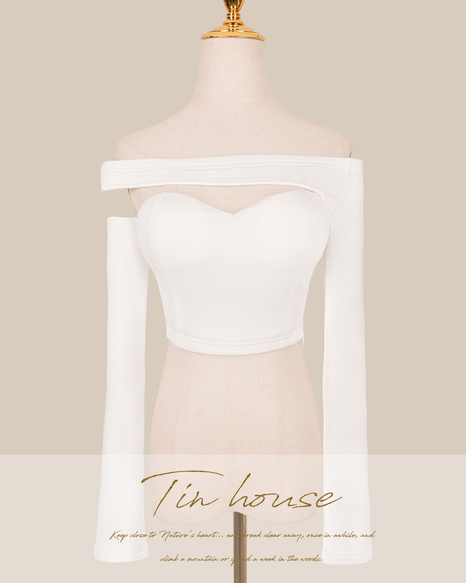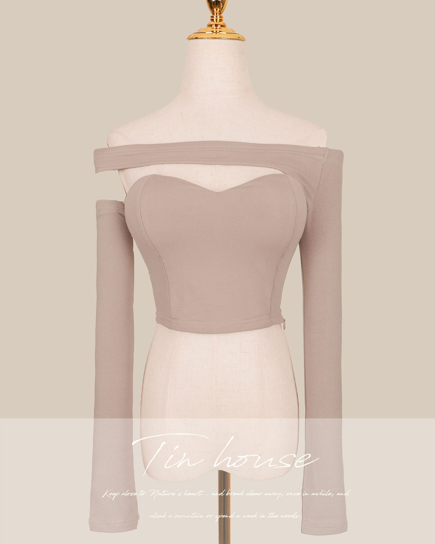 訂製-不對稱一字領桃心長袖上衣