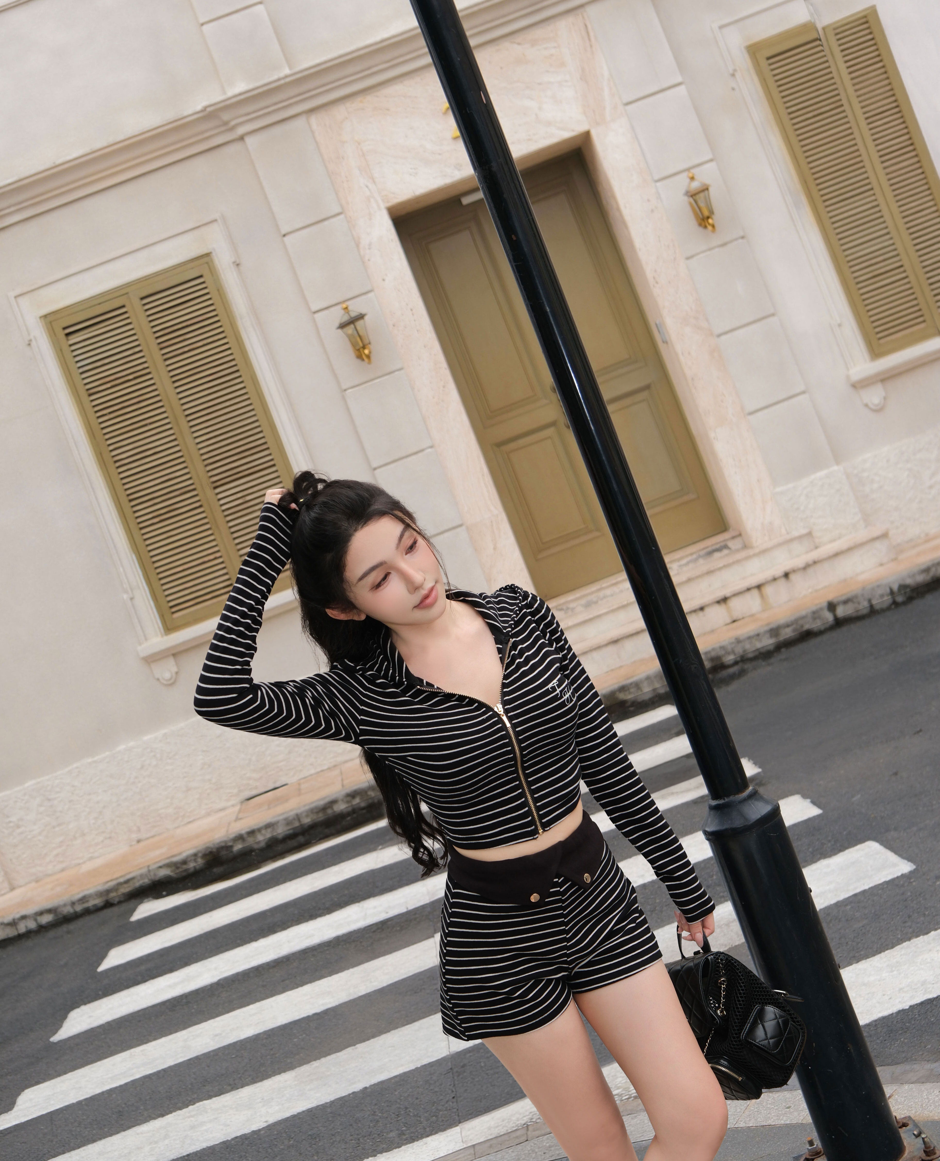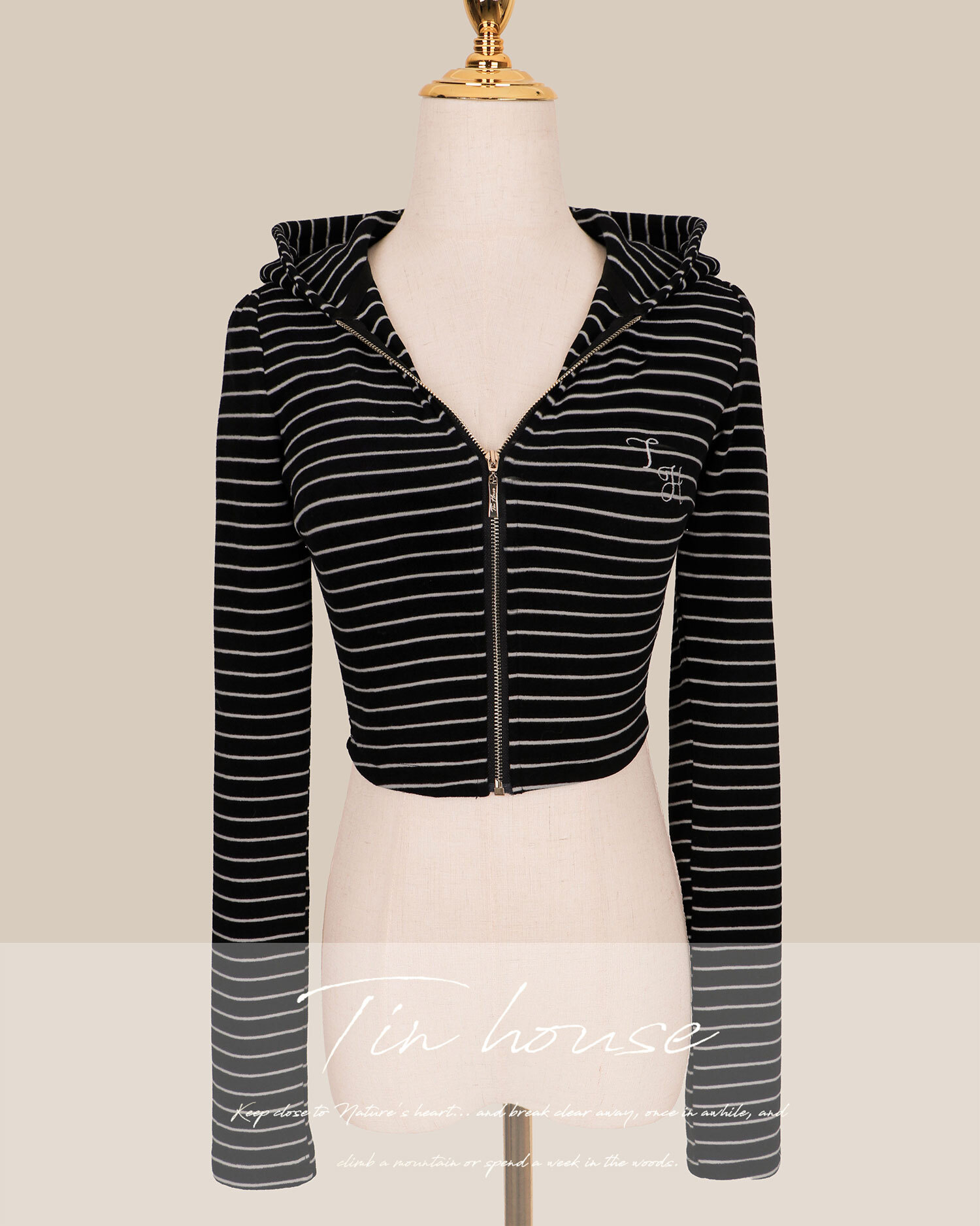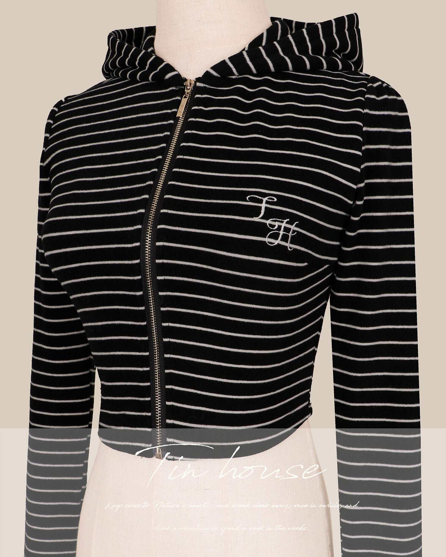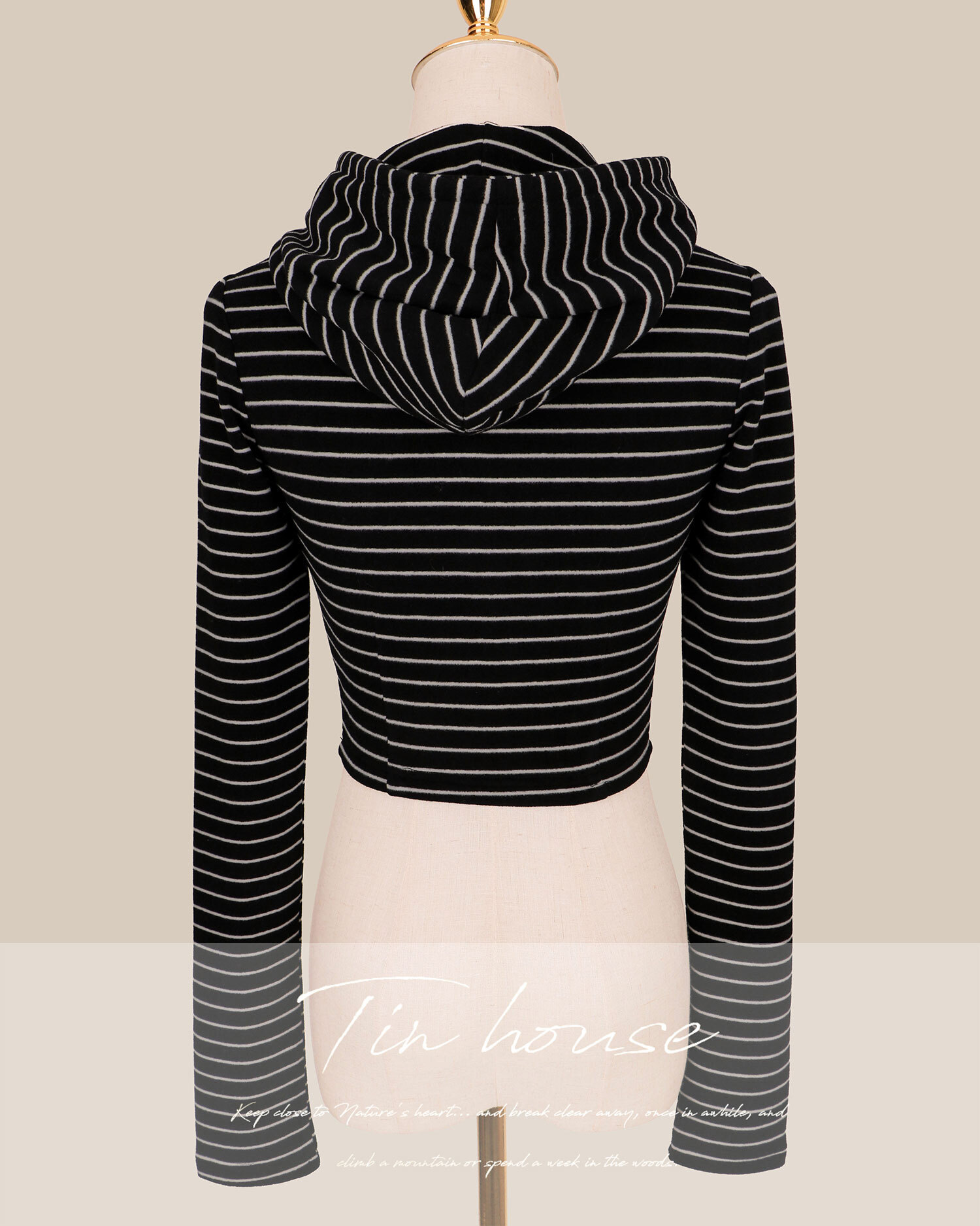 訂製-休閒條紋磨毛連帽短外套