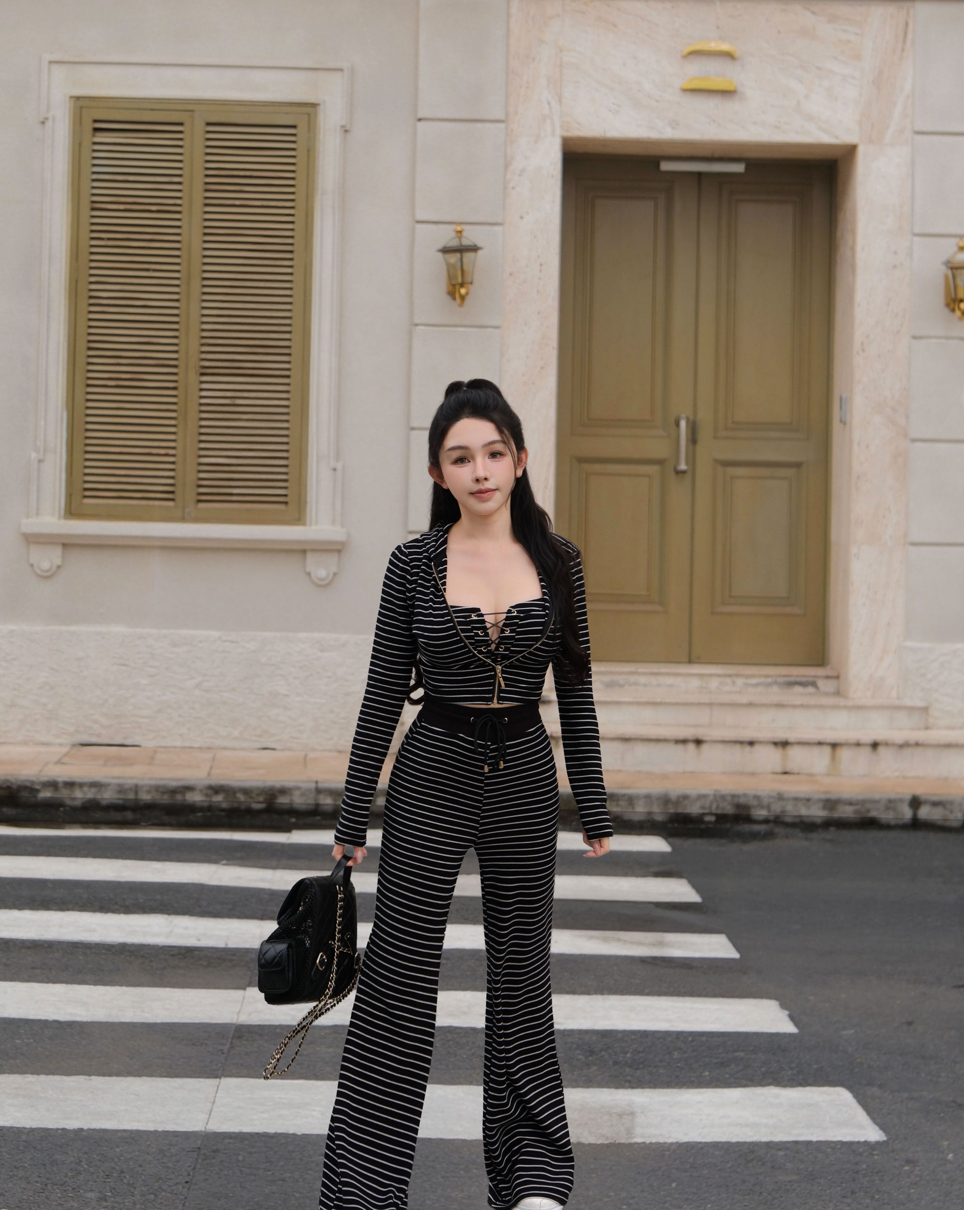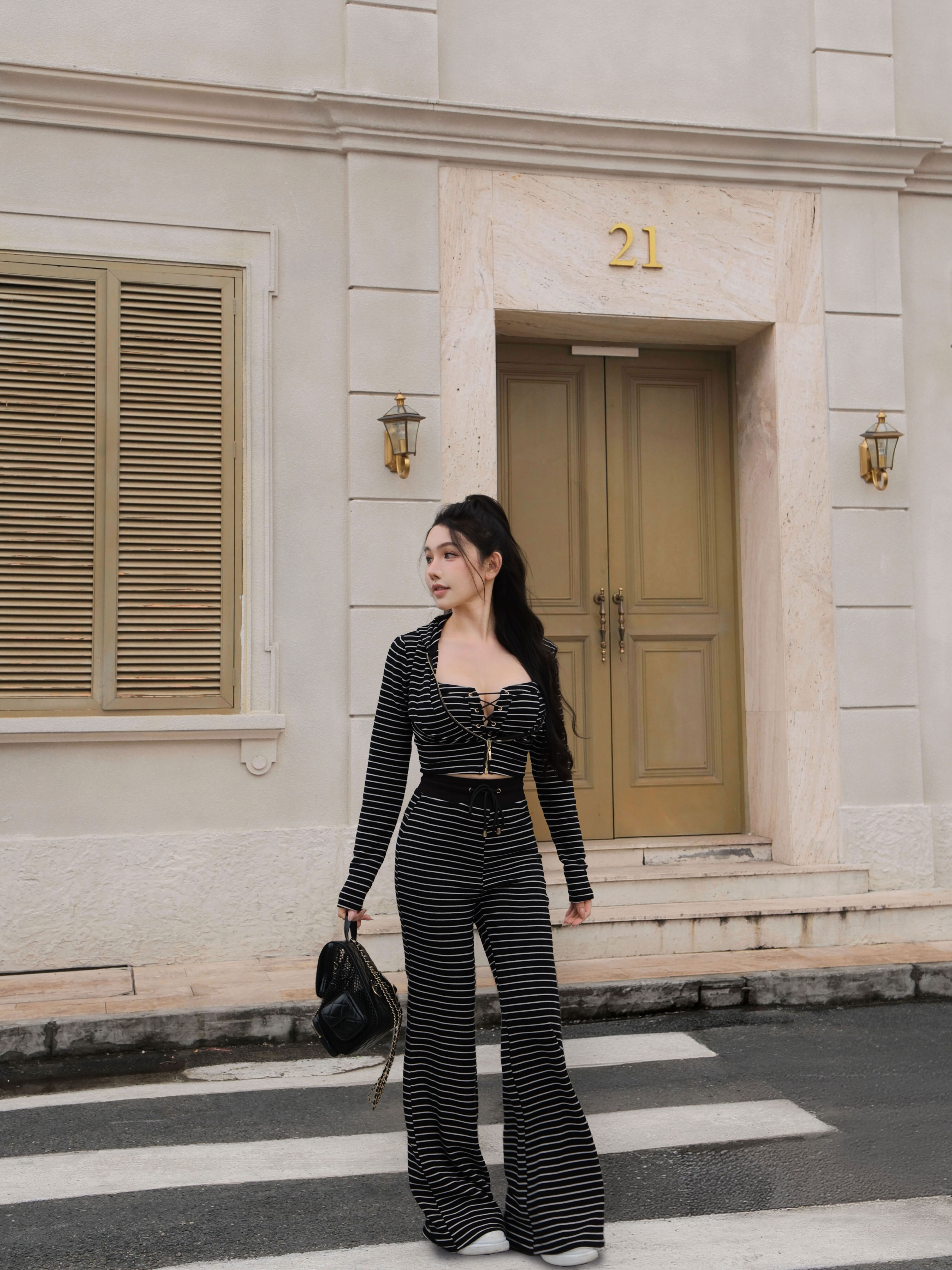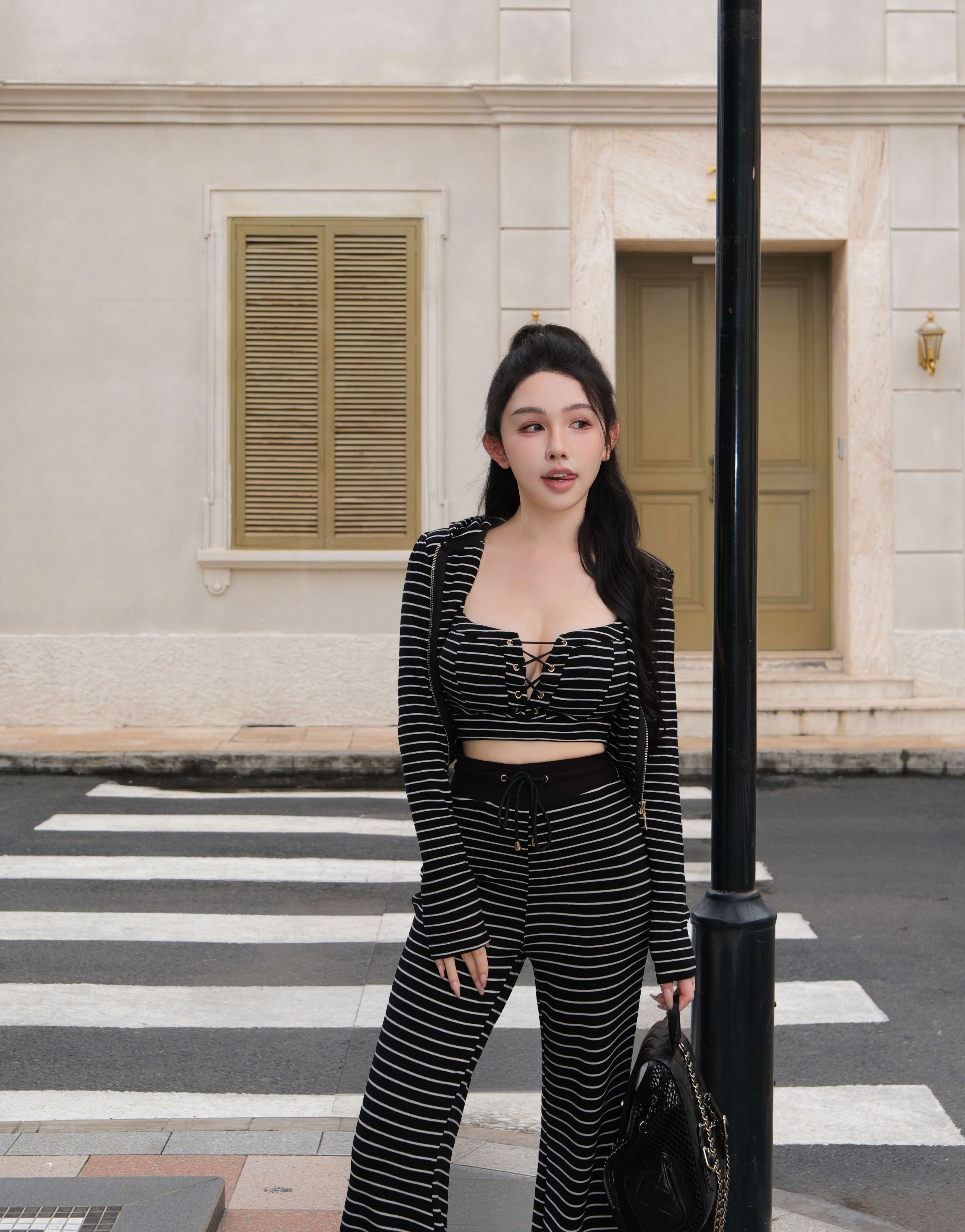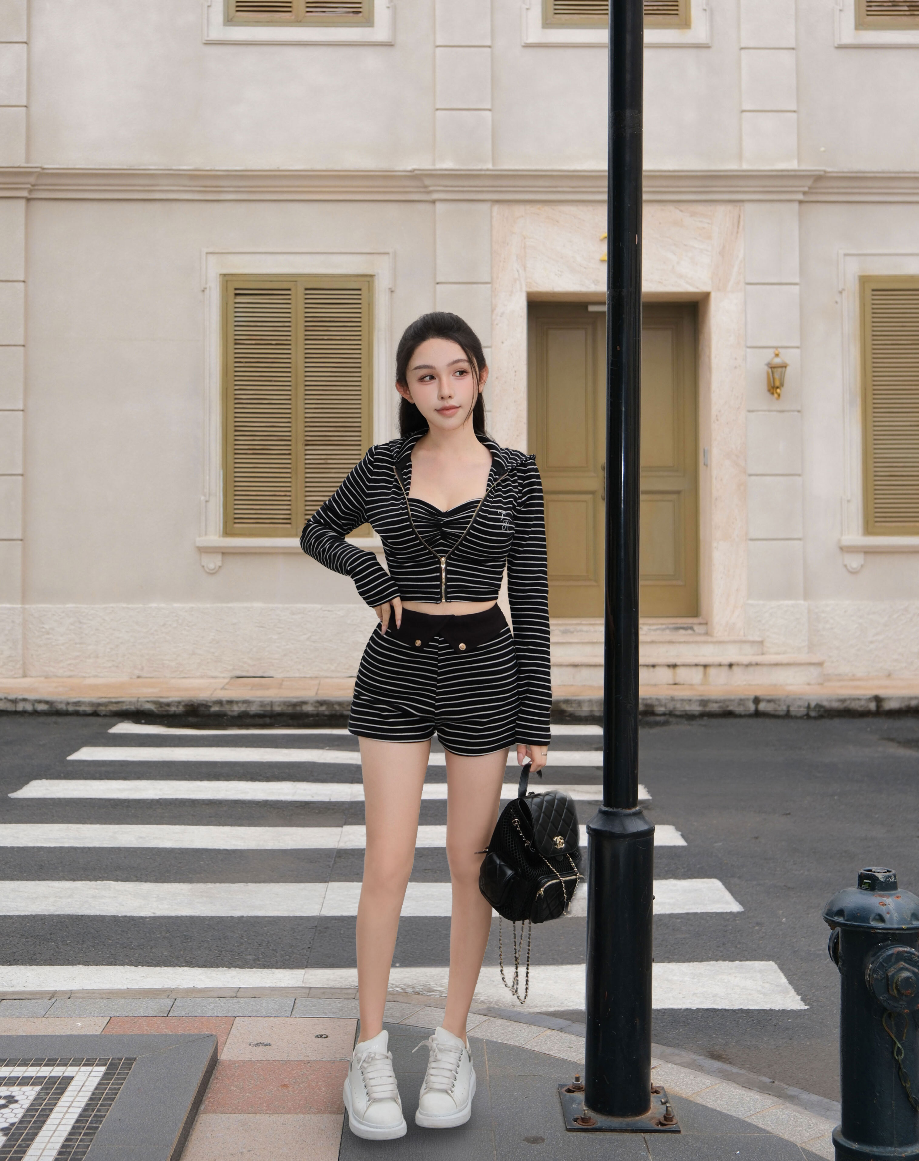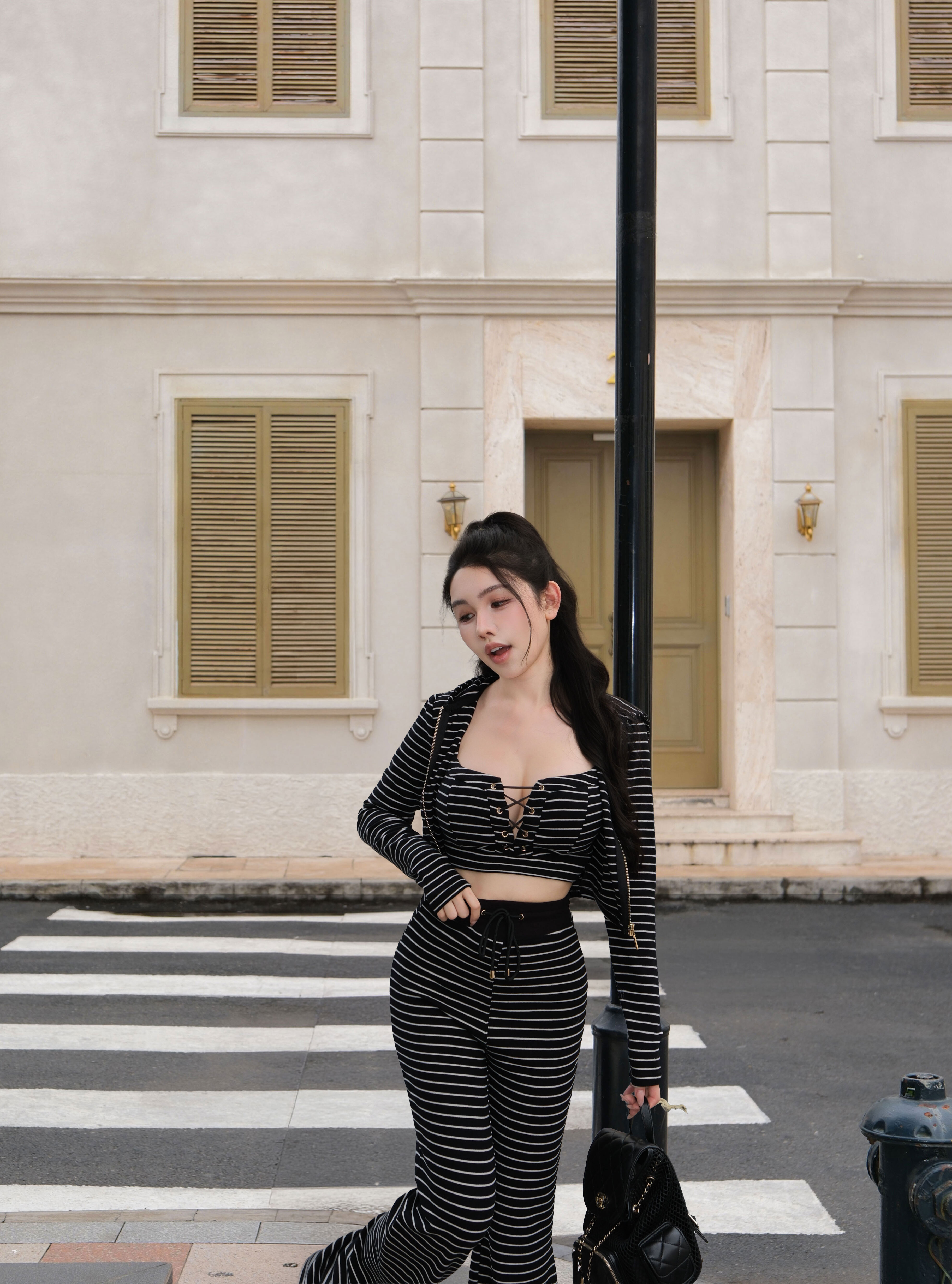 訂製-休閒條紋磨毛連帽短外套