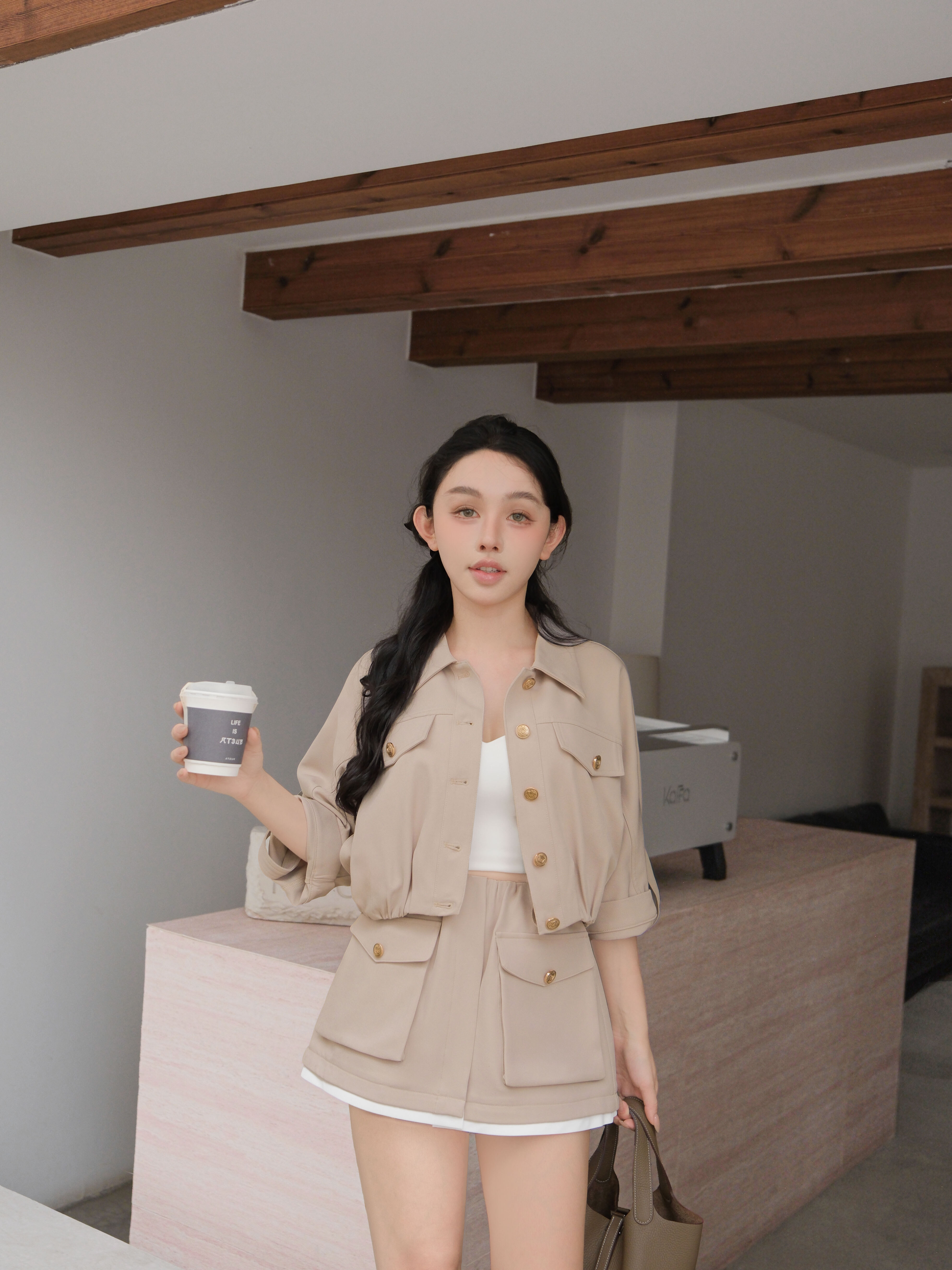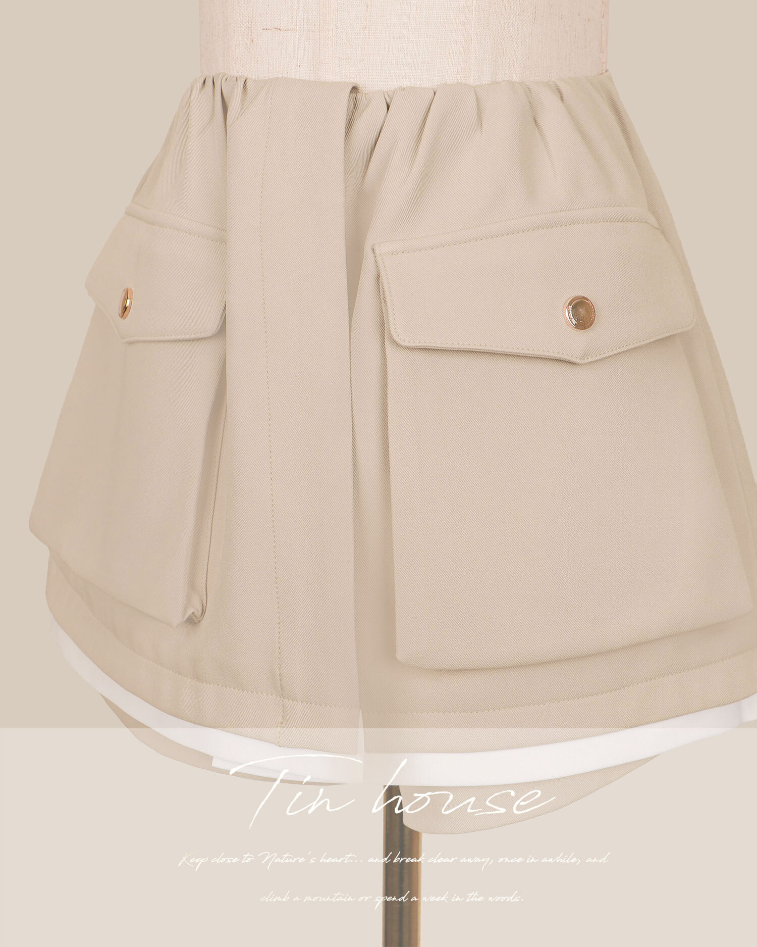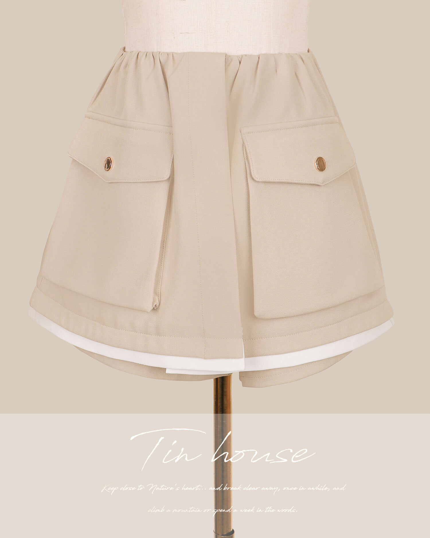 訂製-柔霧簡約雙口袋撞色褲裙