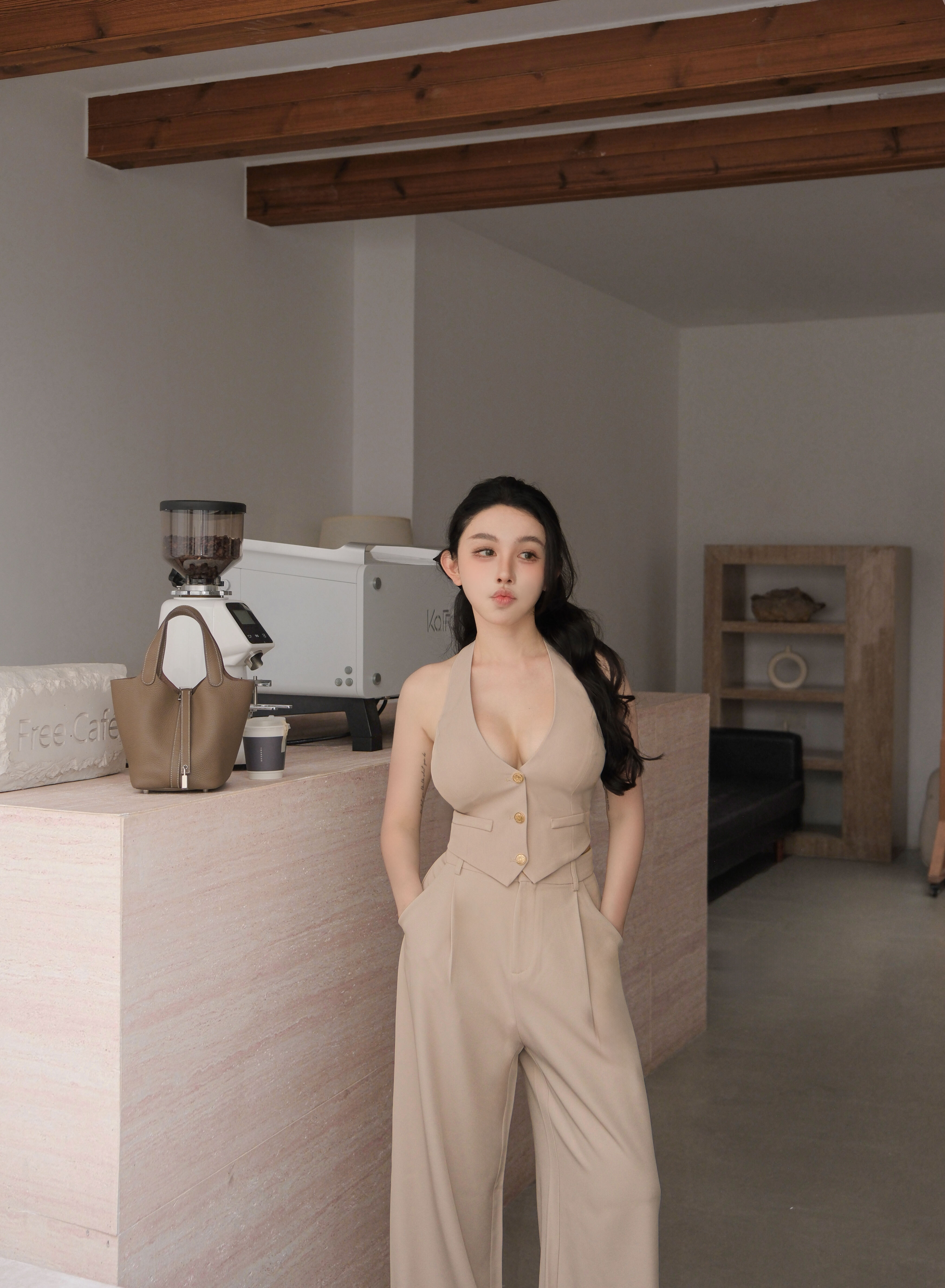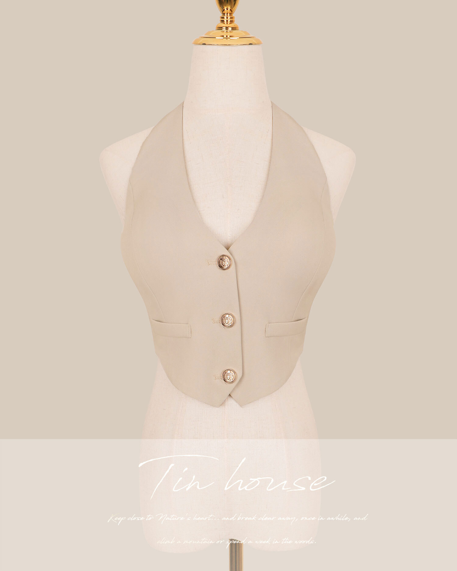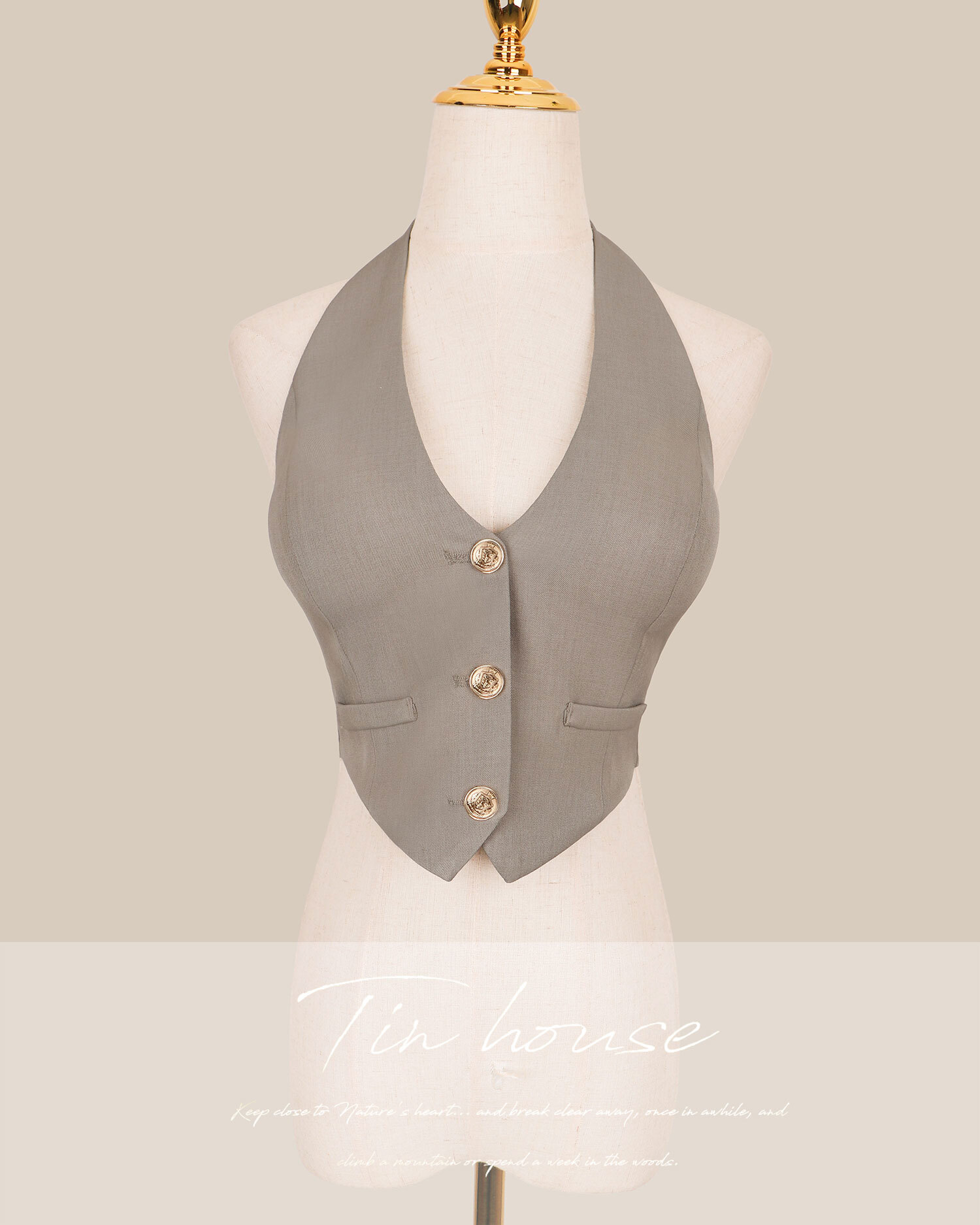 訂製-柔霧簡約掛脖削肩背心