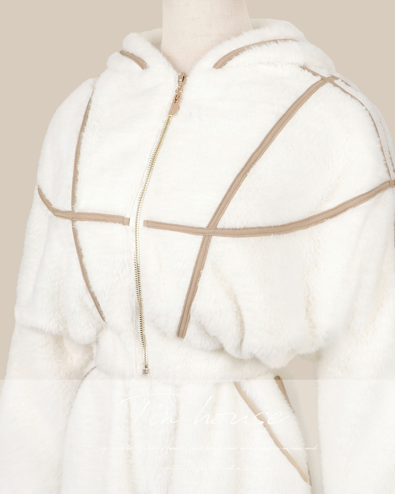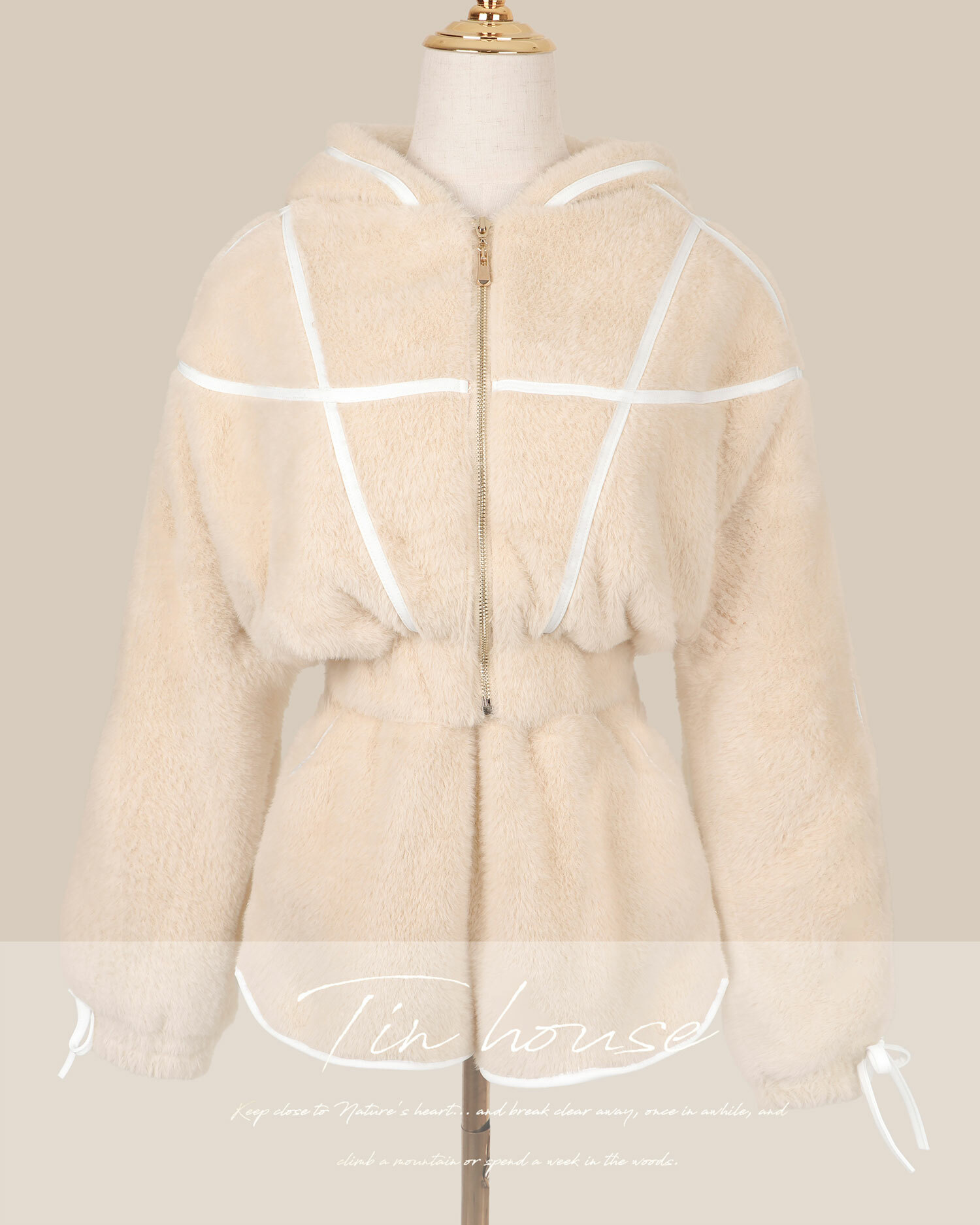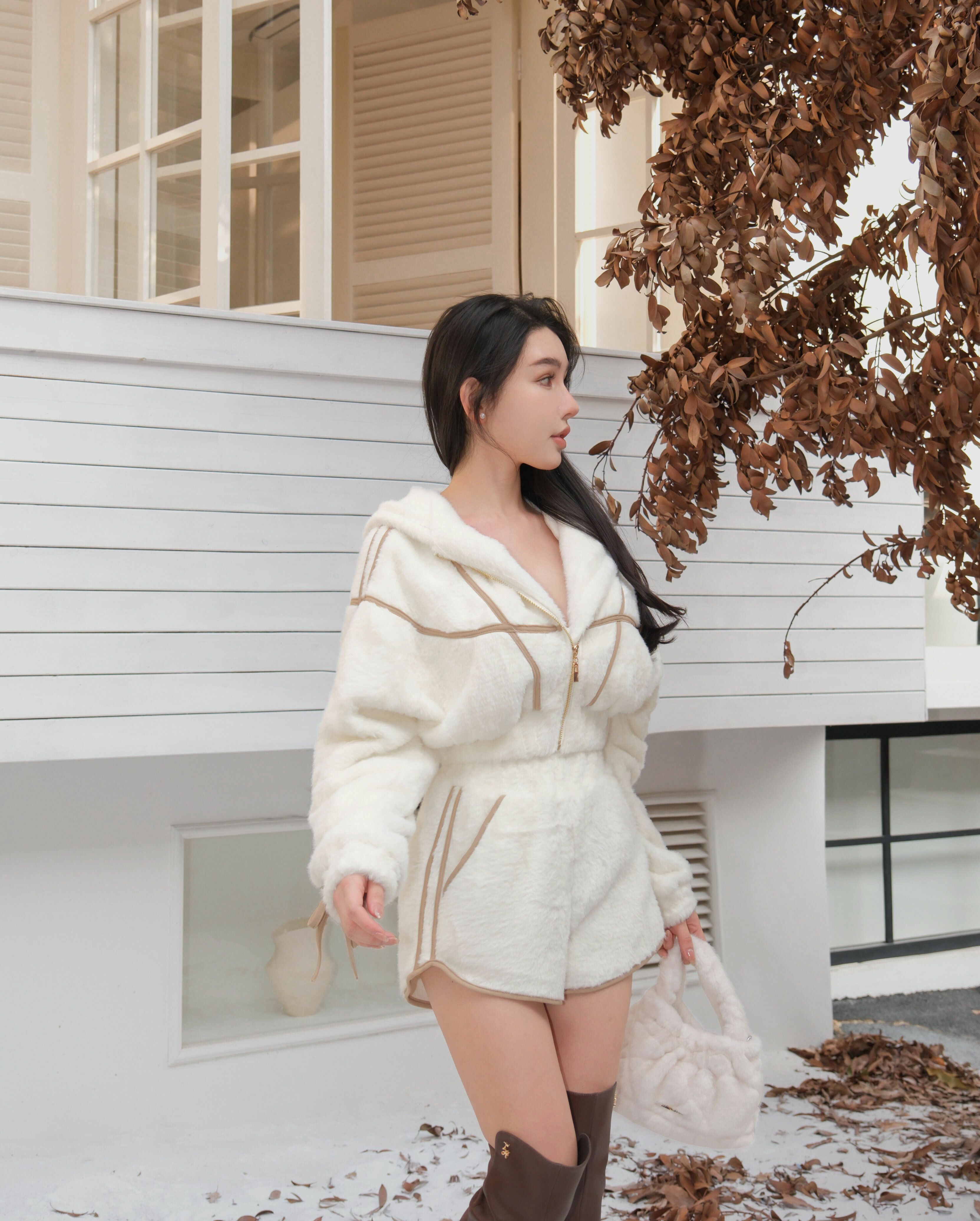 訂製-甜美毛海撞色線條連帽套裝