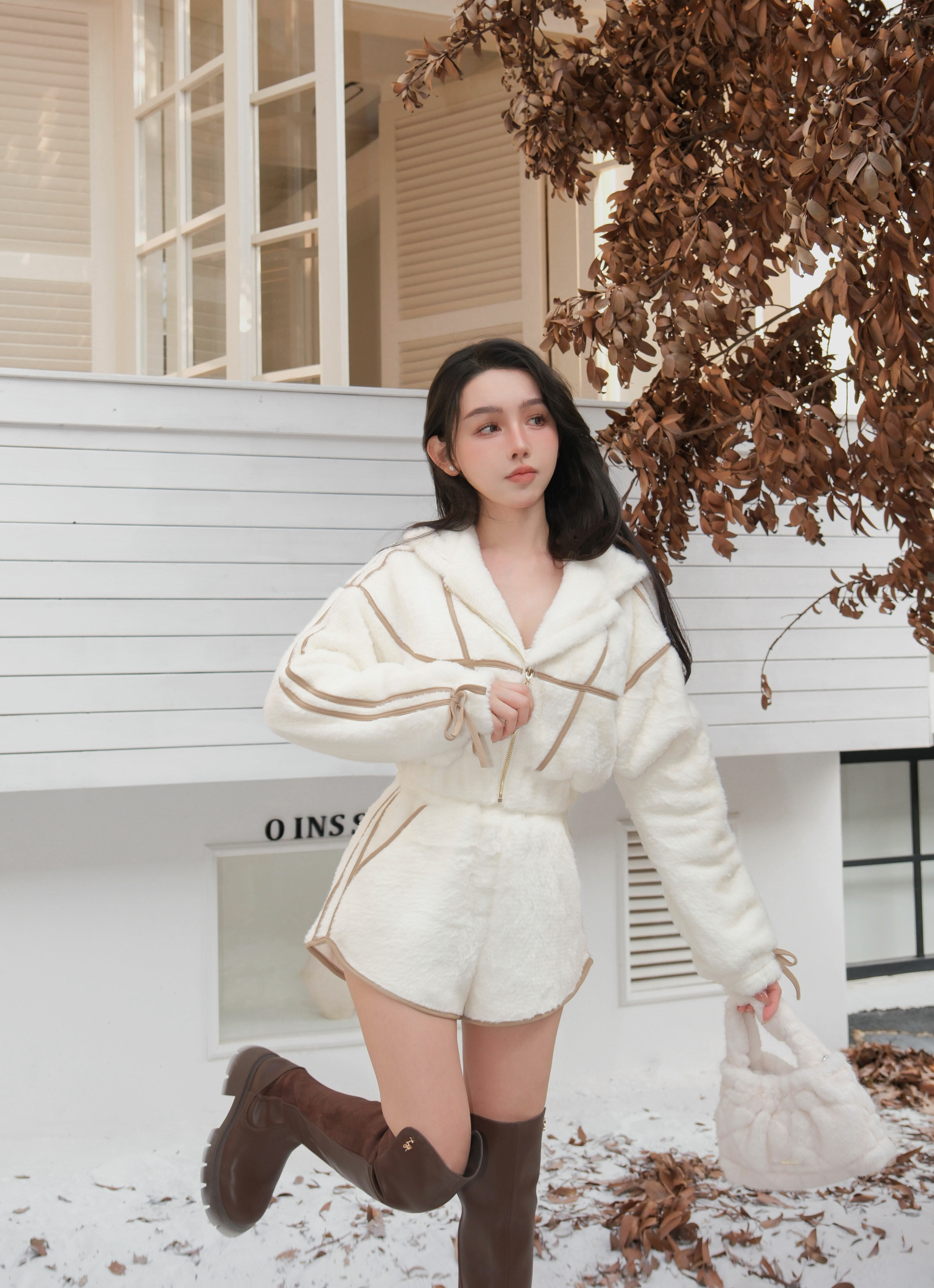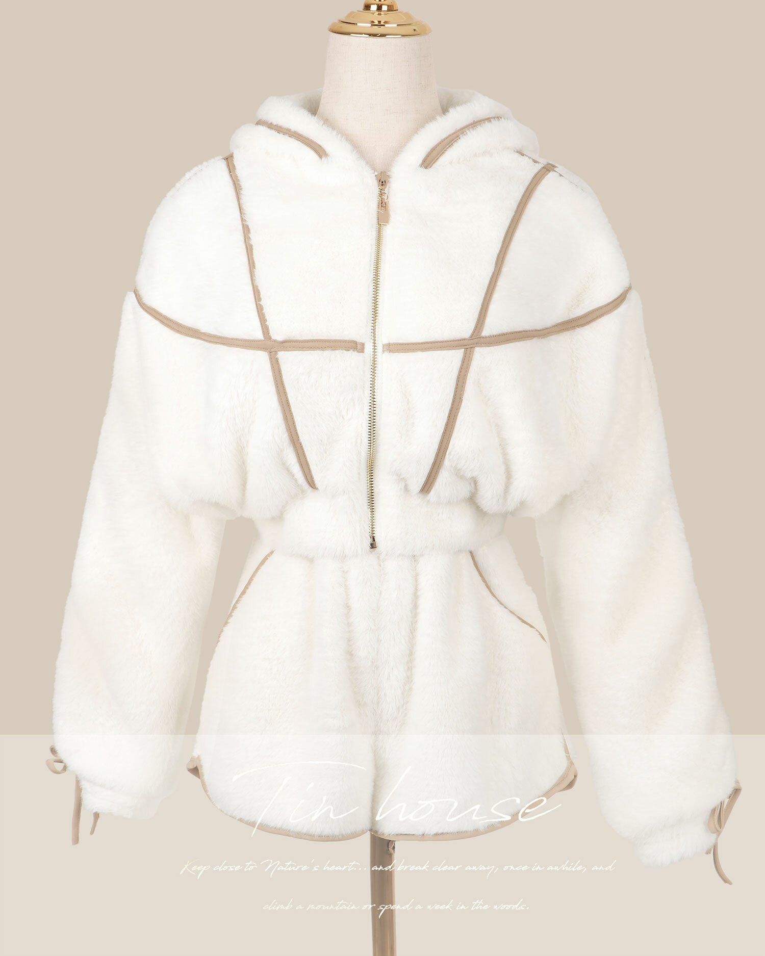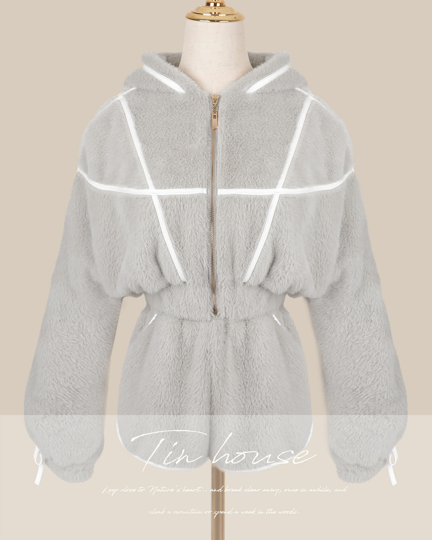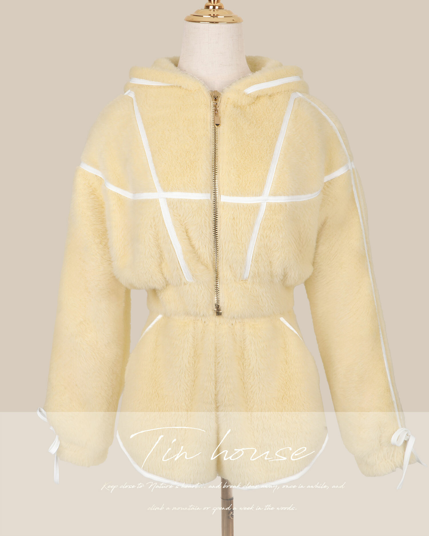 訂製-甜美毛海撞色線條連帽套裝