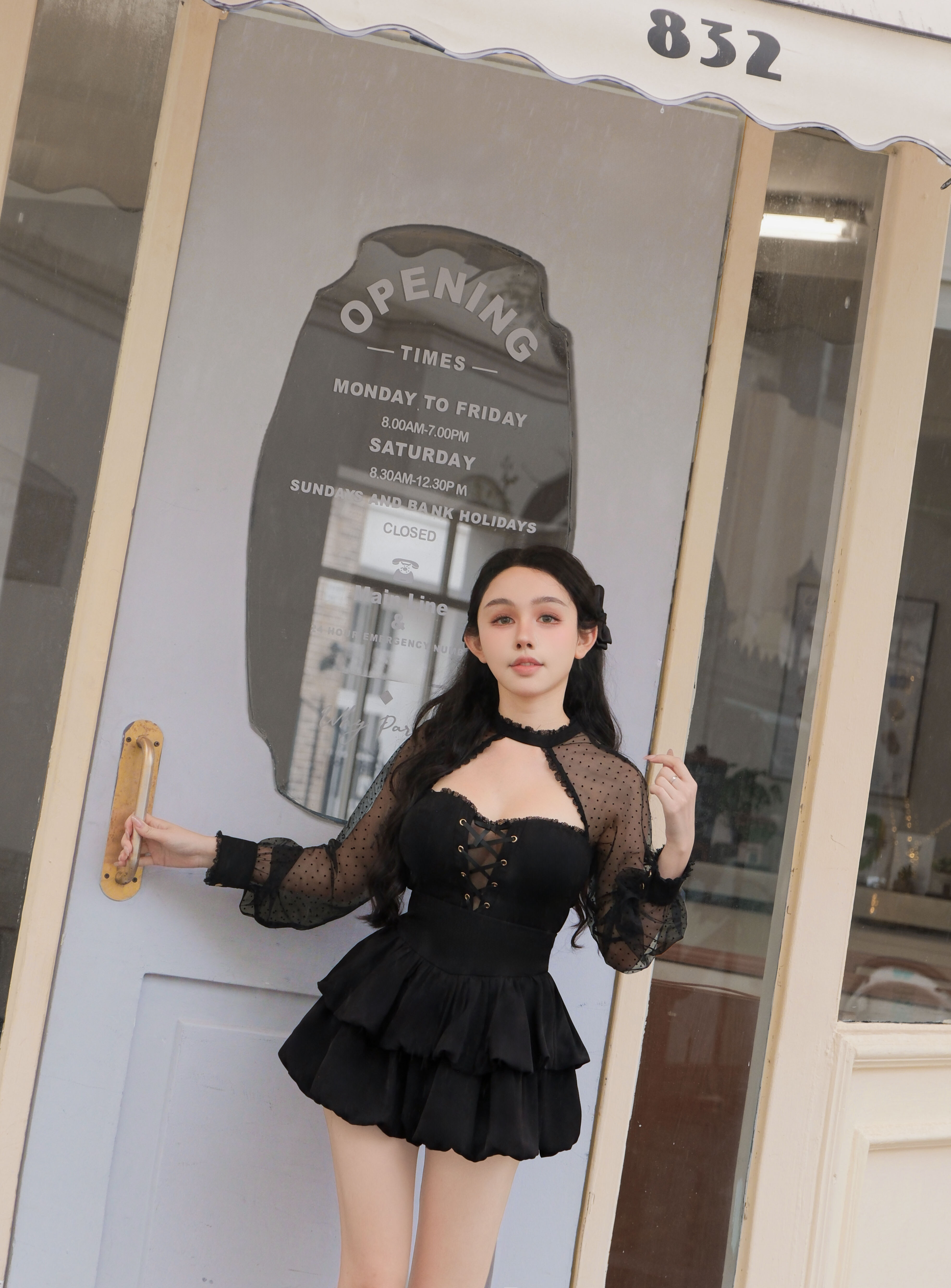 訂製-純欲圓點網紗桃心緞帶上衣